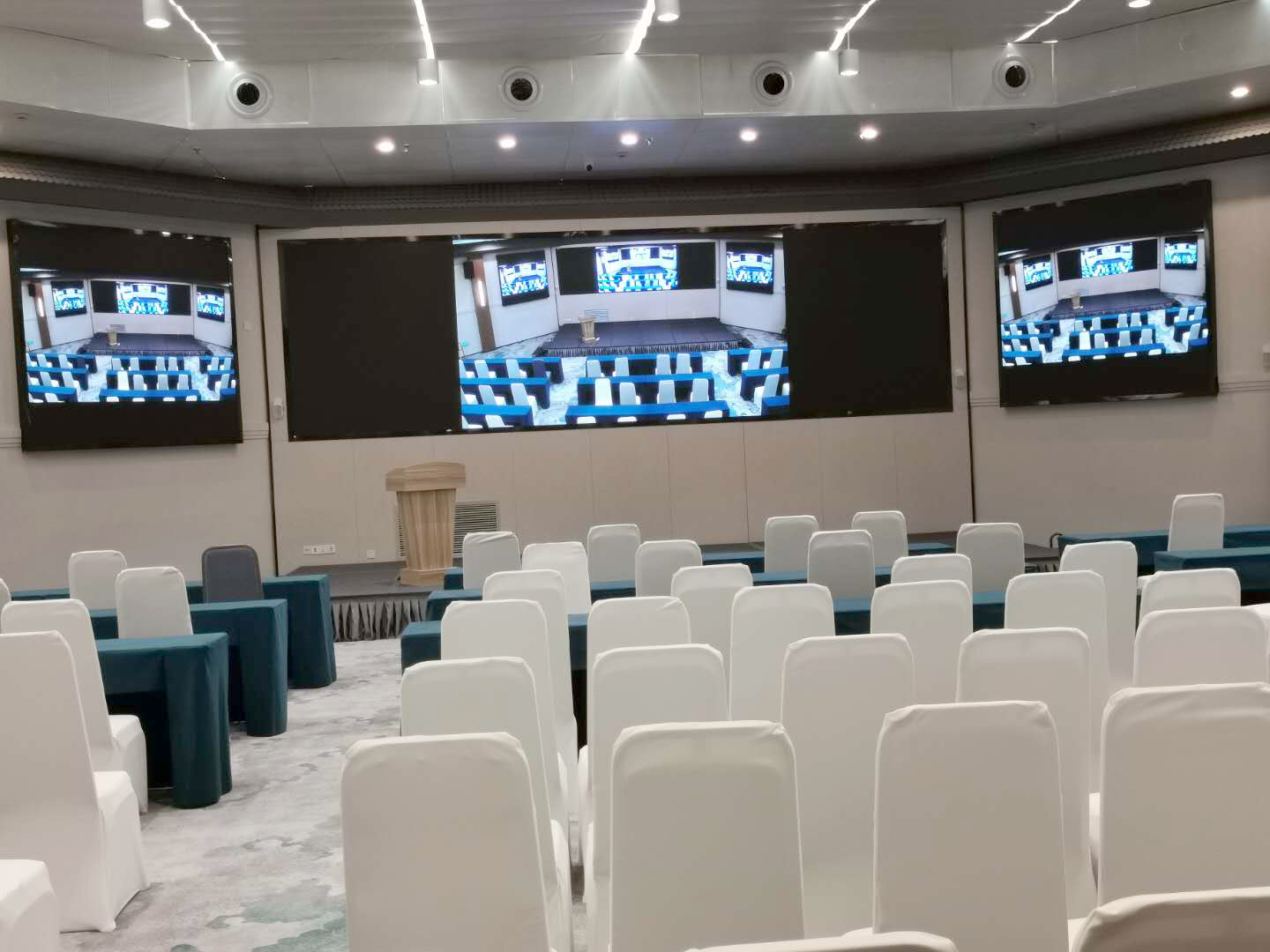 矩陣系統(tǒng):滿足不同演示場合的需求,使得不同場合多種不同的音視頻信號源如多媒體地插、DVD、會議攝像頭、電視機頂盒等;顯示終端如投影機、液晶電視機、LED全彩屏、LCD拼接大屏、觸摸一體機等,多個信號源與多個顯示設(shè)備之間自由信號切換。