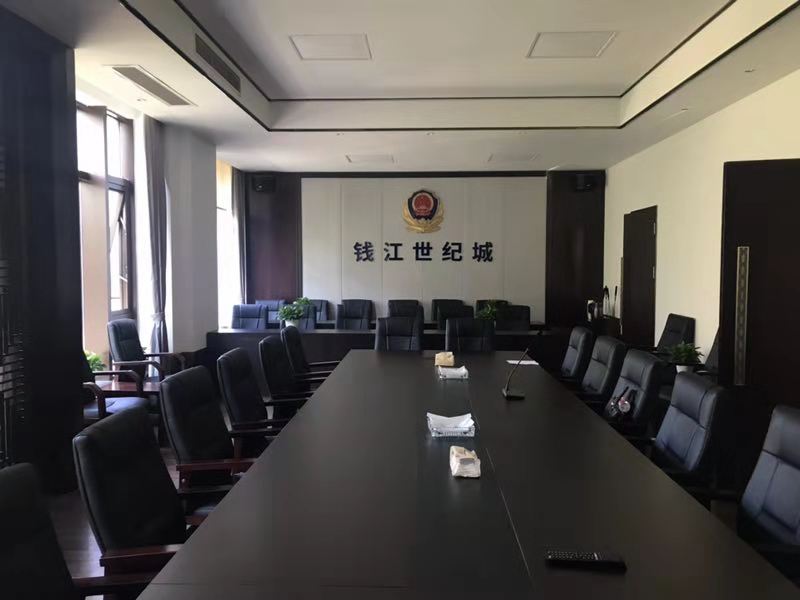 錢江世紀(jì)城派出所會議室采用DS無線數(shù)字會議系統(tǒng):系統(tǒng)采用無線方式連接,便攜安裝,而且無需布線,不影響整體的裝修布局??蛇B接會場音響擴(kuò)聲及錄音設(shè)備,可與DS中控系統(tǒng)結(jié)合,締造完美的會議系統(tǒng)方案。