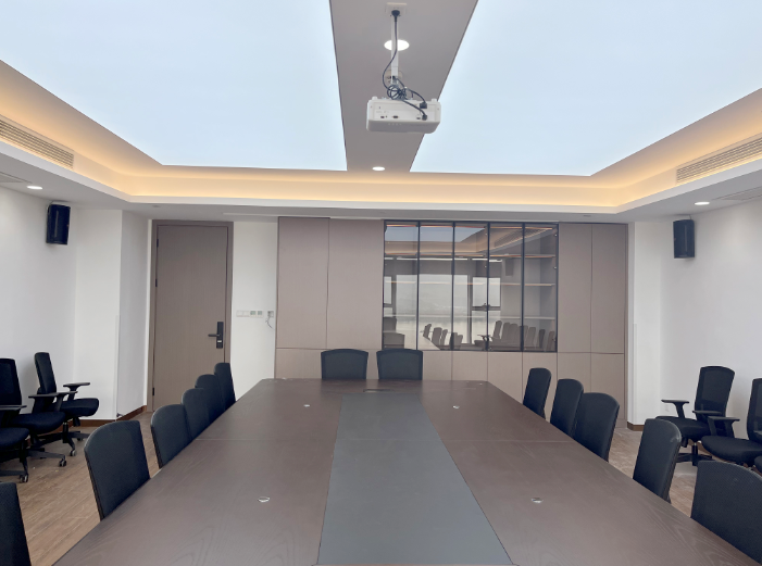 江畔銘座會議室經(jīng)由我司設計,搭配整體會議建聲環(huán)境及美觀需要,選用我司6寸全頻音箱及無線話筒滿足日常討論及開會需要,搭配矩陣和投影機使會議內(nèi)容能直觀顯現(xiàn),整套系統(tǒng)設備又由墻面七寸屏進行控制,使方案美觀、易用、體驗佳。