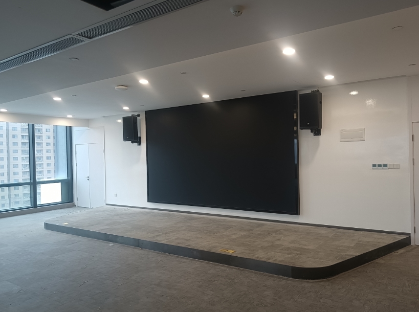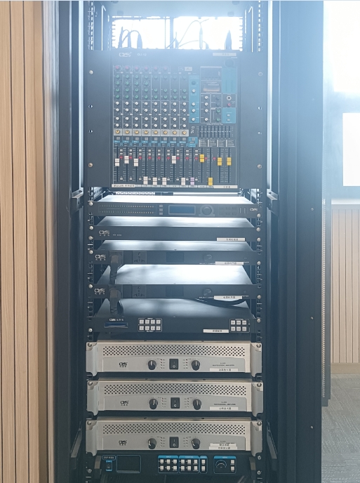 矩陣切換系統(tǒng)以四路混合式式矩陣為核心,將多個視頻終端的視頻信號發(fā)送至終端(LED屏),并將其中視頻自帶的音頻信號解碼轉(zhuǎn)至模擬信號經(jīng)由擴(kuò)聲系統(tǒng)發(fā)出,通過切換信號源可將地插連接的電腦信號或?qū)z像機(jī)信號輸出至大屏,可實現(xiàn)會議演講或室內(nèi)監(jiān)控功能。