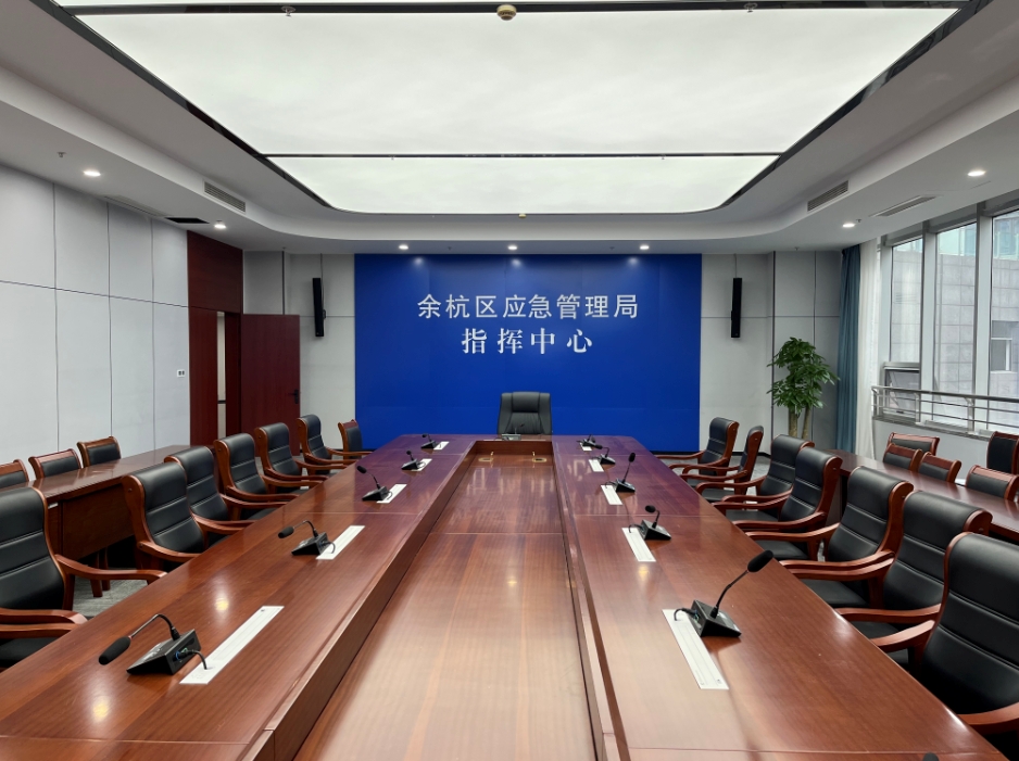 各個部門日常需開展內(nèi)部和市局的各種會議,我司便為其進行了會議室的升級改造。升級改造完成后的余杭區(qū)應(yīng)急管理局會議室分為指揮中心、研判室、會商室、值班室和設(shè)備間。指揮中心日常主要開展杭州會議、騰訊會議等遠程視頻會議。