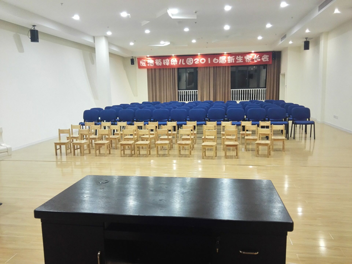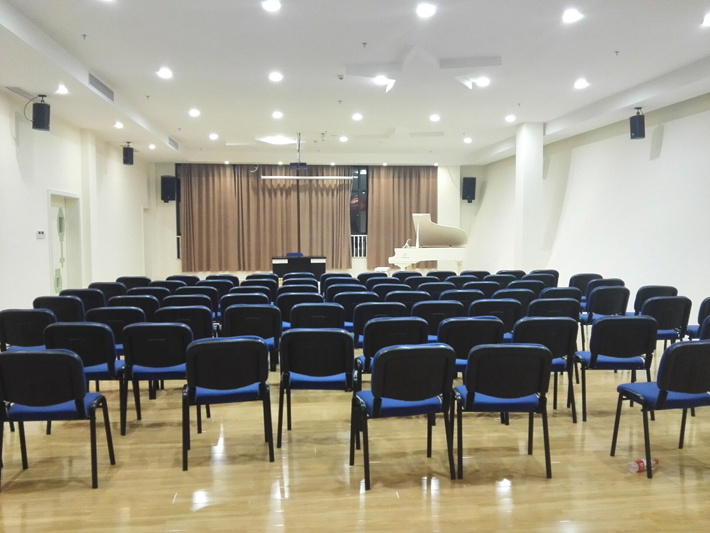 該幼兒園音樂(lè)教室配置數(shù)字顯示系統(tǒng)和專業(yè)擴(kuò)聲系統(tǒng),顯示系統(tǒng)采用一臺(tái)投影機(jī)和一塊幕布作為大屏顯示??紤]到音樂(lè)教室對(duì)聲音的還原度要求較高,擴(kuò)聲系統(tǒng)均選取專業(yè)級(jí)設(shè)備。采用2只10寸全頻揚(yáng)聲器作為主音箱,另配置4只6寸全頻揚(yáng)聲器作為輔助揚(yáng)聲器,保證音樂(lè)教室聲壓級(jí)滿足國(guó)家一級(jí)標(biāo)準(zhǔn),以及聲場(chǎng)均勻。