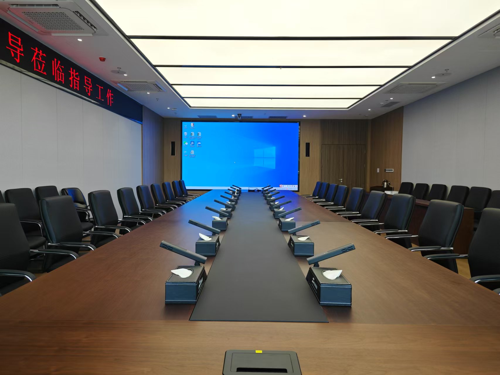 根據(jù)使用需求,DS迪賽思為集團(tuán)配置集專業(yè)擴(kuò)聲系統(tǒng)、數(shù)字會討系統(tǒng)、視頻會議系統(tǒng)、會議錄播系統(tǒng)、集中控制系統(tǒng)及周邊系統(tǒng)于一體的多媒體會議系統(tǒng)解決方案。滿足各類會議、報告、培訓(xùn)、講座和接待等使用需求。確保集團(tuán)多媒體系統(tǒng)設(shè)備先進(jìn)、功能完善、系統(tǒng)穩(wěn)定。