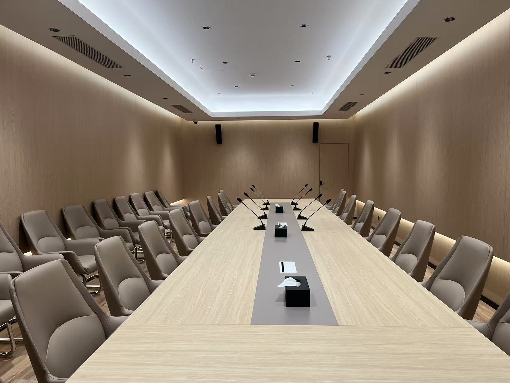 無線數字會議系統會議室采用DS無線數字會議系統:系統采用無線方式連接,便攜安裝,而且無需布線,不影響整體的裝修布局??蛇B接會場音響擴聲及錄音設備,可與DS中控系統結合,締造完美的會議系統方案。