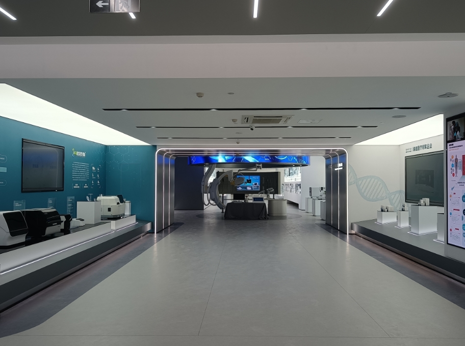 展示中心分為序章、第1章《積勢(shì)謀局》、第2章《科創(chuàng)引領(lǐng)》、第3章《新質(zhì)動(dòng)能》、第4章《融合未來》、服務(wù)區(qū)板塊,各展區(qū)均具備動(dòng)態(tài)展示項(xiàng),通過前期需求溝通,針對(duì)動(dòng)態(tài)展示區(qū)域配置擴(kuò)聲輔助展示,音視頻同步,聲像一致。并通過中控配置,實(shí)現(xiàn)對(duì)動(dòng)態(tài)展示項(xiàng)內(nèi)容播控、音量和燈光進(jìn)行智能化控制。