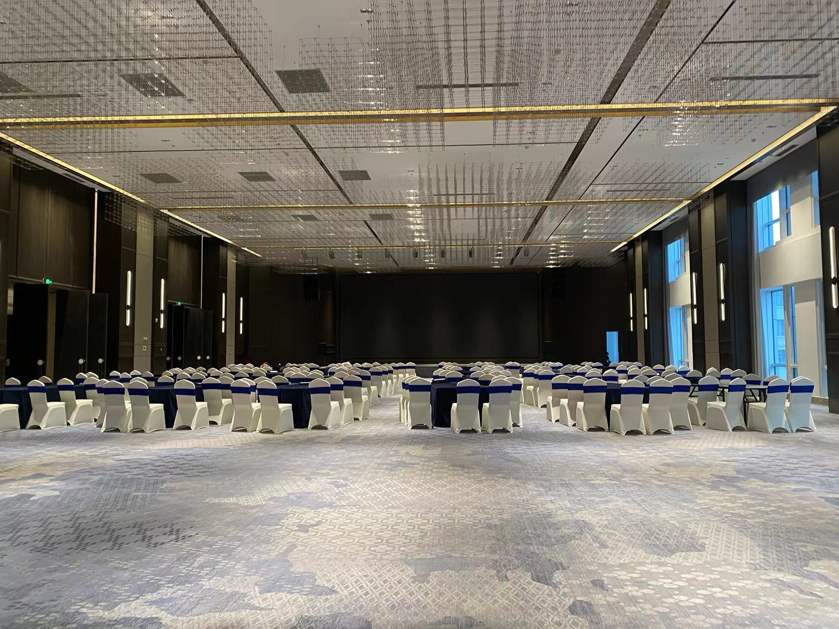 通過前期需求溝通,宴會廳配置會議燈具,娛樂使用時采用租賃設(shè)備,預(yù)留電源與控制接口,配置面光燈和會議平板燈,滿足會議場景使用。