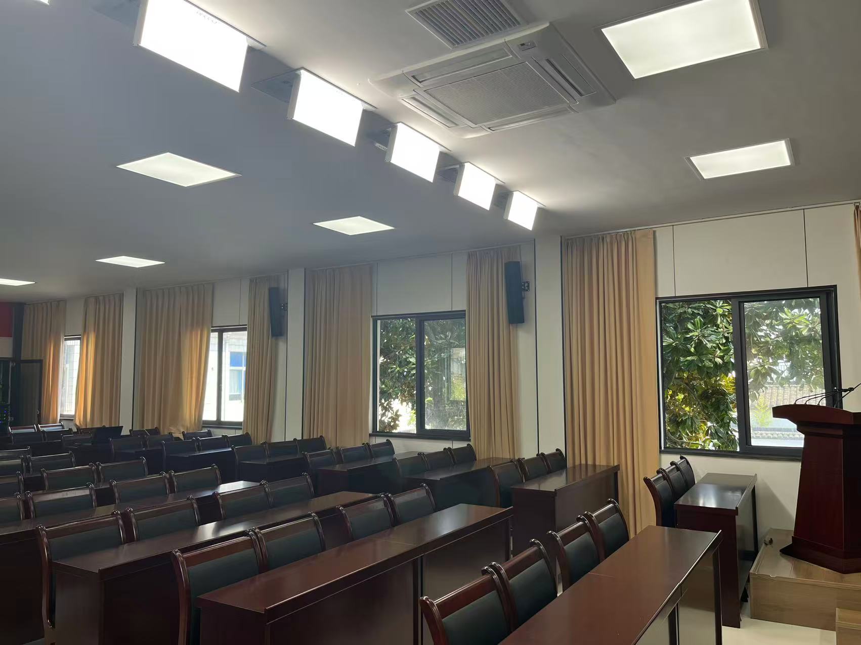 該會(huì)議室內(nèi)對(duì)燈光要求高,需要照度均勻、設(shè)備美觀可隱藏、同時(shí)要結(jié)合現(xiàn)場(chǎng)層高及裝修。為此,我司采用嵌入式燈光和可翻轉(zhuǎn)調(diào)角度燈光,嵌入式燈光做為頂光補(bǔ)光,翻轉(zhuǎn)式燈光作為面光補(bǔ)光,可根據(jù)人的座位及高度進(jìn)行角度調(diào)節(jié),使日常開會(huì)時(shí)各方面需求達(dá)到滿足。