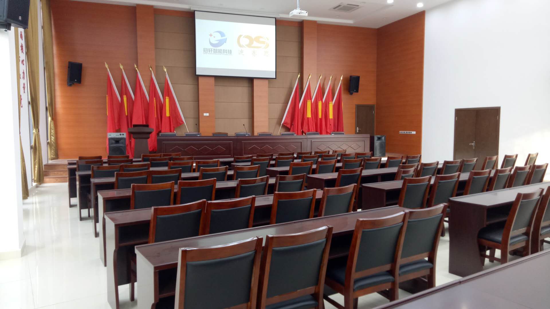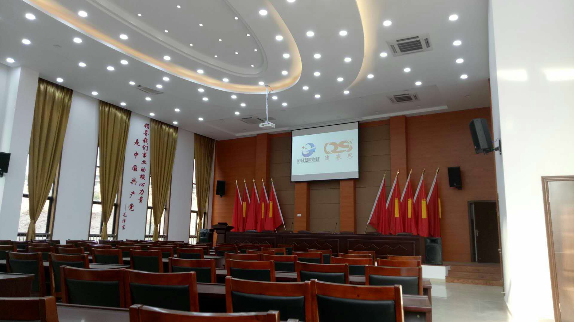 擴(kuò)聲系統(tǒng)主要由揚(yáng)聲器、功率放大器、音頻處理設(shè)備、調(diào)音臺、話筒、音源等設(shè)備組成。整個系統(tǒng)選用同類產(chǎn)品中音色優(yōu)美的高檔次音響器材為主組成音響系統(tǒng),DS選用同類產(chǎn)品中技術(shù)最成熟、性能先進(jìn)、使用可靠的產(chǎn)品型號,通過計(jì)算會議室的音響場地系數(shù)進(jìn)行設(shè)計(jì),保證會議室每個角落的聲場聽覺均勻,沒有出現(xiàn)失真、偏音、混音、回響等不良音響效果;會議室的擴(kuò)聲系統(tǒng)主要由三大部分組成:聲源、音頻處理設(shè)備、功放及揚(yáng)聲器系統(tǒng)。