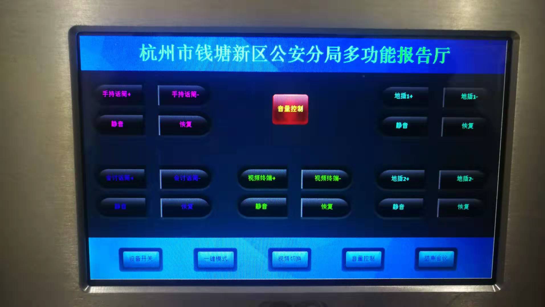 DS集中控制系統(tǒng),通過定制化編程,控制包括系統(tǒng)一鍵開啟和關(guān)閉、音量大小調(diào)節(jié)、投影吊架升降、投影開關(guān)、幕布升降、燈光開關(guān)等智能控制。避免傳統(tǒng)系統(tǒng)因繁復(fù)動作所引起的誤操作,大大提高工作效率,使用者更能集中精力工作,不必為系統(tǒng)操作而分心。