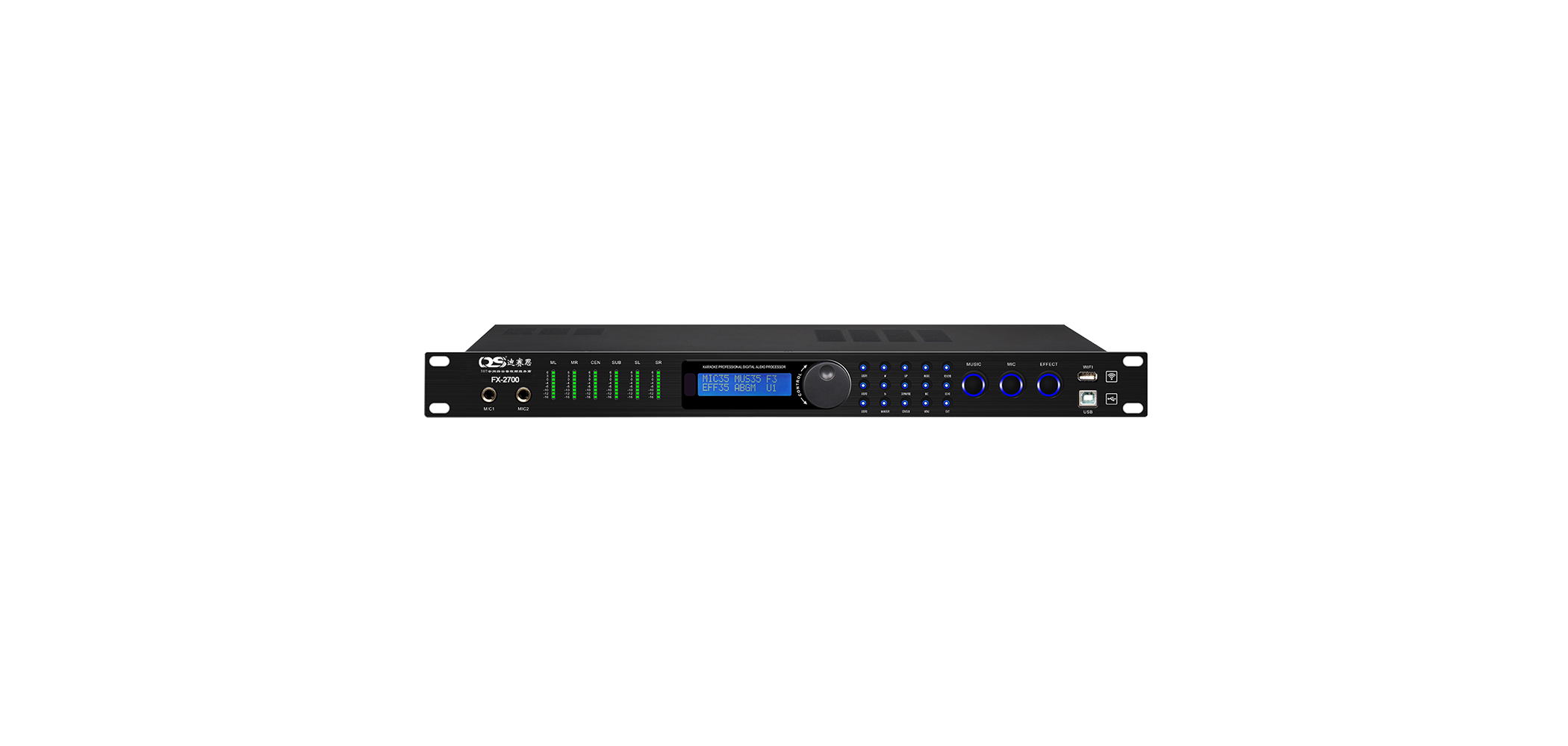 2.音樂輸入采用15段參量均衡,7段立體聲數(shù)字變調(diào)控制,可調(diào)噪聲門控制;